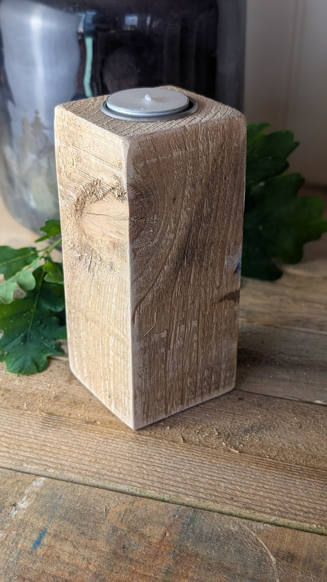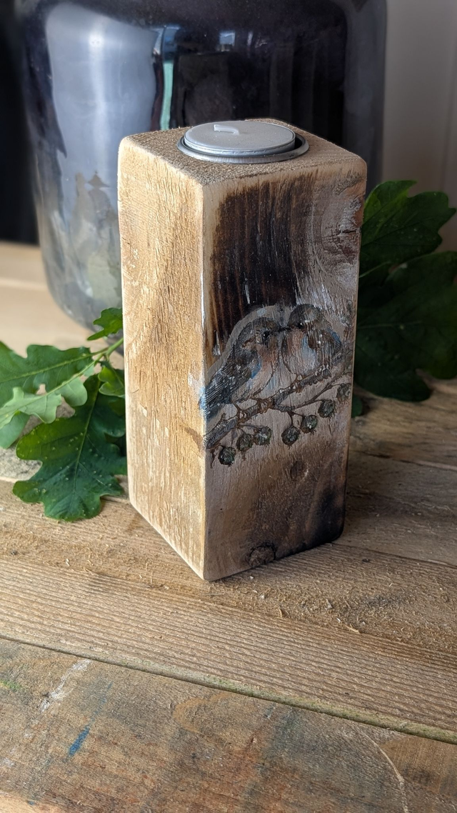 Birds in tree in rustic harmony - Tealight Holder Reclaimed Wood