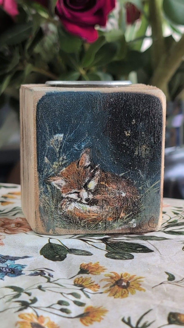 Fox sleeping - Tealight Holder Reclaimed Wood
