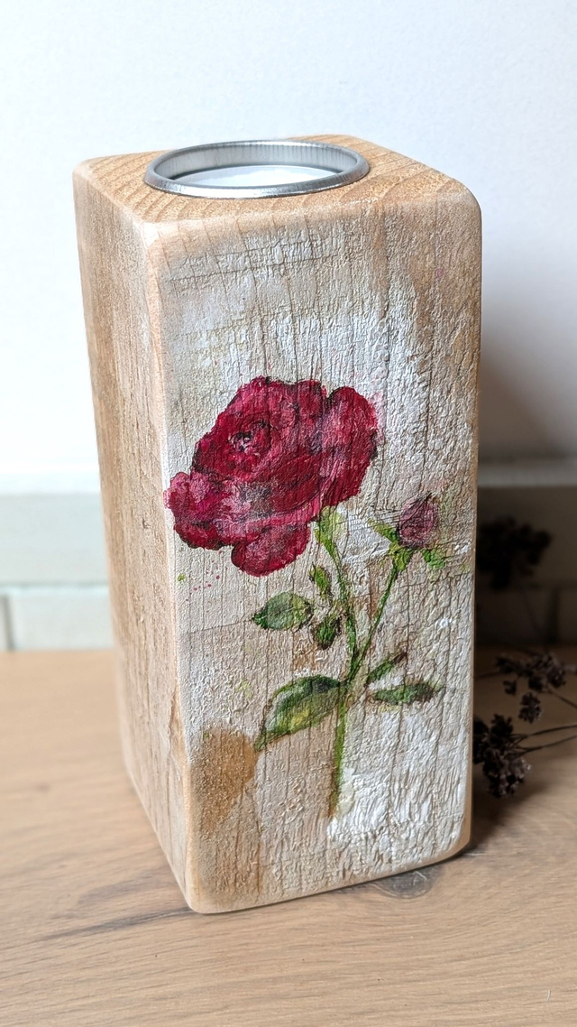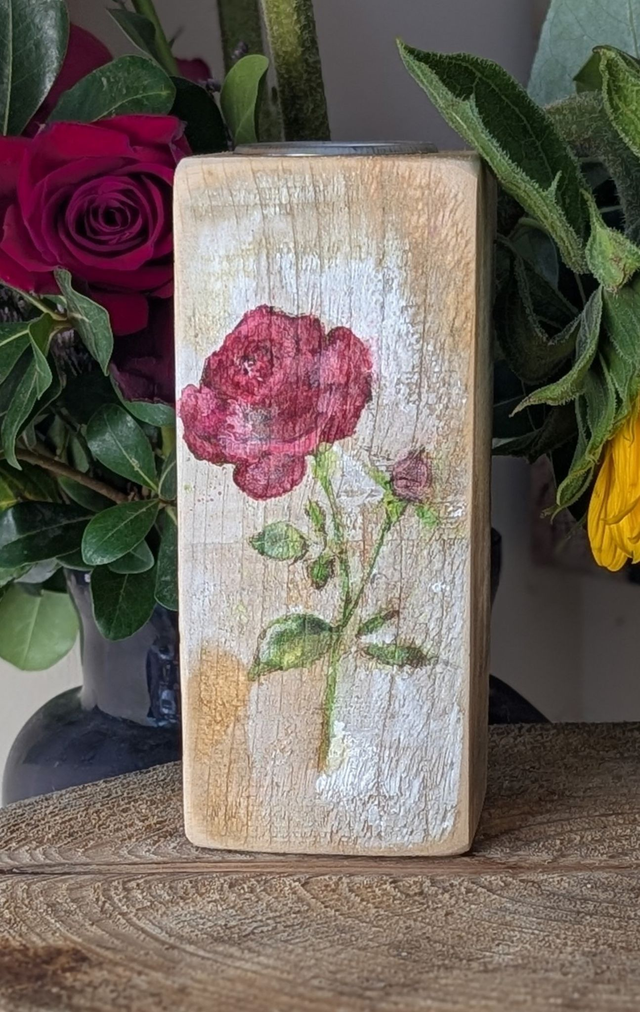 Rose Single Pink - Tealight Holder Reclaimed Holder