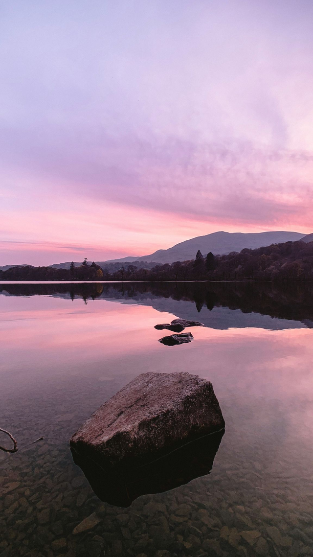 Original image used in this piece is from UnSplash a free resource from photographers when accepting their terms. Images included by Gus G titled Derwent Water, Keswick and the second using the large rock is Chapman Chow titled Coniston, Cumbria.